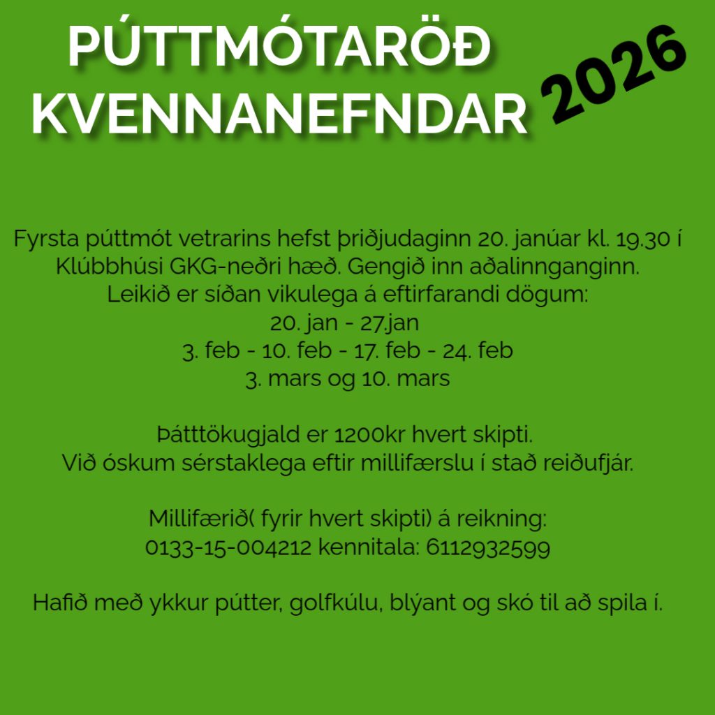 Næsta mót er þriðjudaginn 27. Janúar, púttmótaröð nr 2. í GKG
